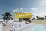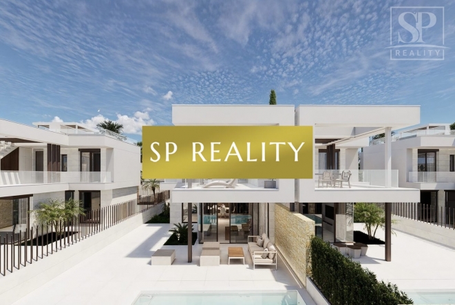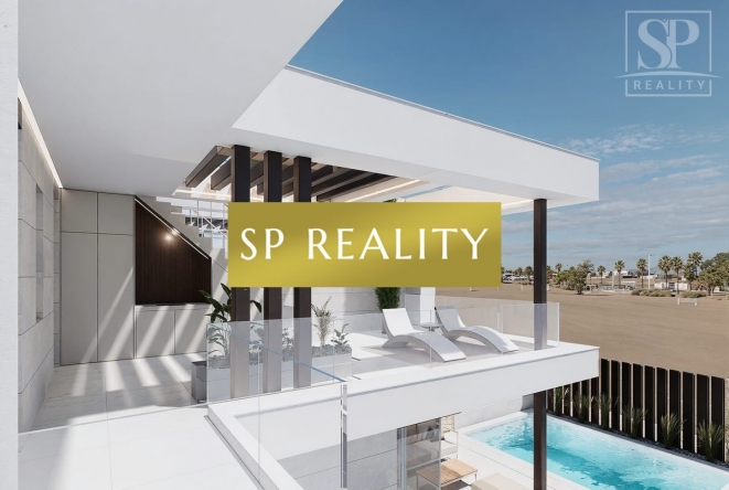 Moderní vily u moře a golfu (La Serena) v Los Alcázares — 3 ložnice / 3 koupelny, dvě podlaží + střešní solárium. Volitelně soukromý bazén, letní kuchyně a jacuzzi. Kvalitní standard: bezpečnostní vstupní dveře, hliníková okna s přerušeným tepelným mostem, dvojskla, motorické žaluzie v ložnicích, sprchové vaničky s prosklením, koupelnový nábytek se zrcadly, předinstalace kanálové A/C, fotovoltické panely, automatická závlaha zahrady. Pěší dosah pláže (≈700 m), La Serena Golf i centra města.