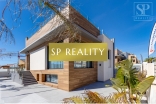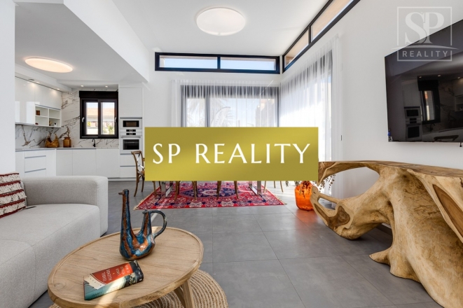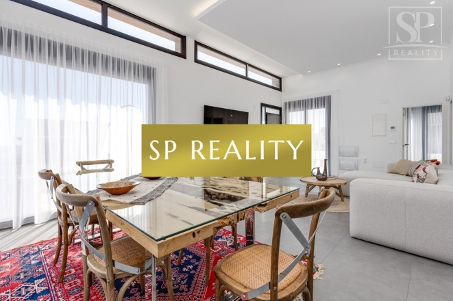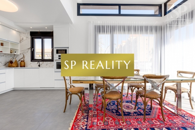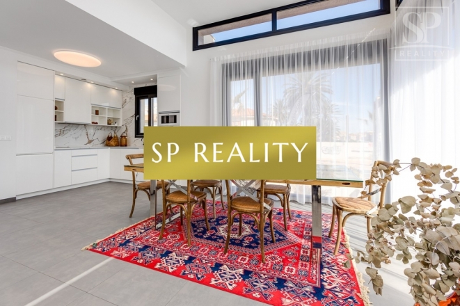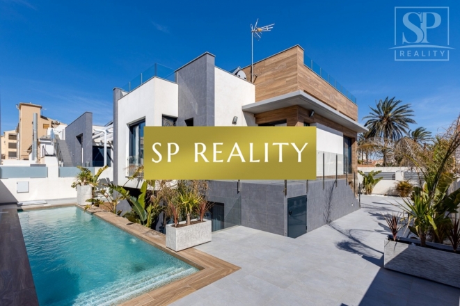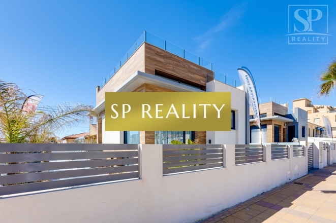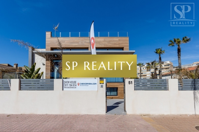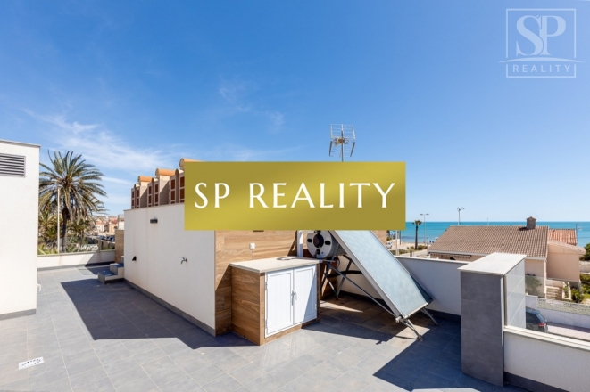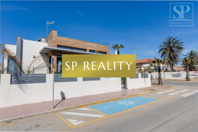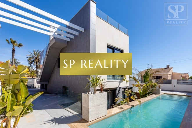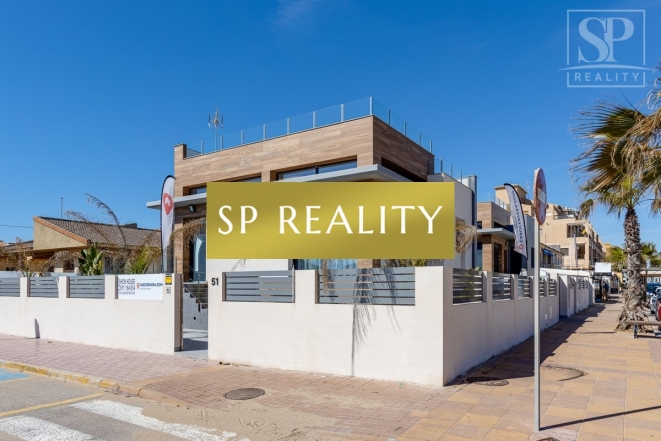 K prodeji je nabízena moderní novostavba, která se nachází pouhou 1 minutu od pláže La Mata a nabízí přímý výhled na moře. Vila stojí ve druhé linii od pláže, v jedné z nejlepších oblastí města Torrevieja – La Mata, které se vyznačuje dobře rozvinutou infrastrukturou. Jedná se o samostatně stojící vilu v lokalitě s širokými ulicemi a vynikající polohou. Pozemek má výměru 300 m² a zahrnuje soukromý bazén. Celková zastavěná plocha činí přibližně 170 m², k tomu 100 m² teras. Nemovitost disponuje 4 ložnicemi (z toho 2 jsou s vlastní koupelnou), dále 4 koupelnami, 2 obývacími pokoji a kuchyní. Součástí je také soukromé parkovací místo, několik teras a střešní solárium s výhledem na moře.