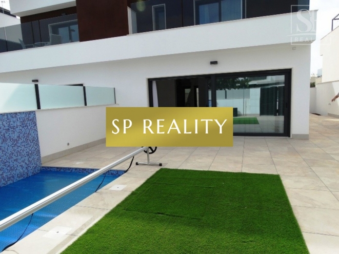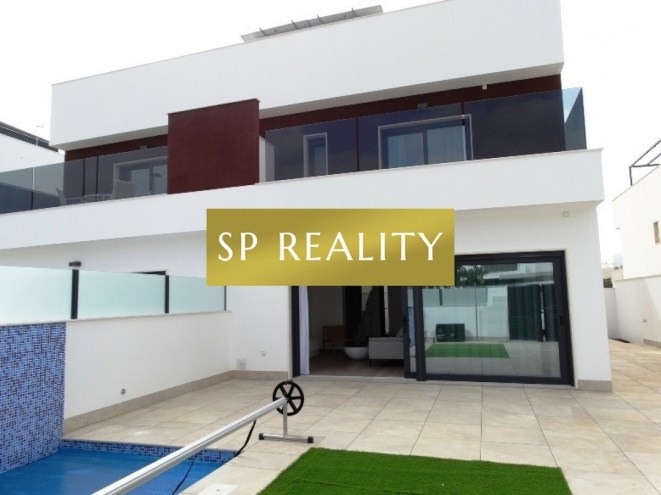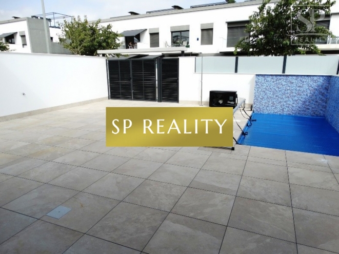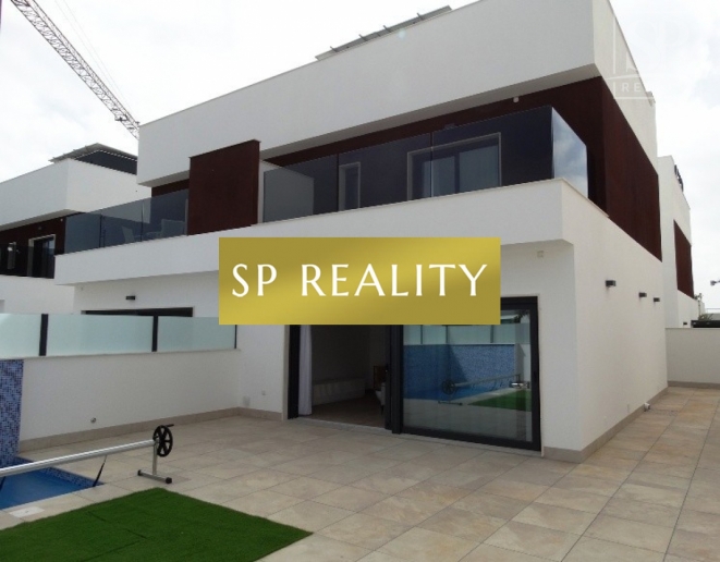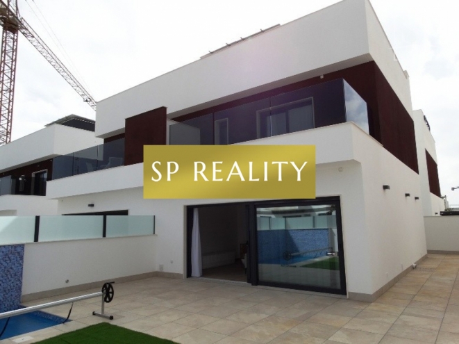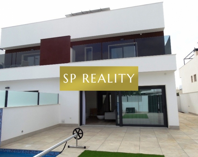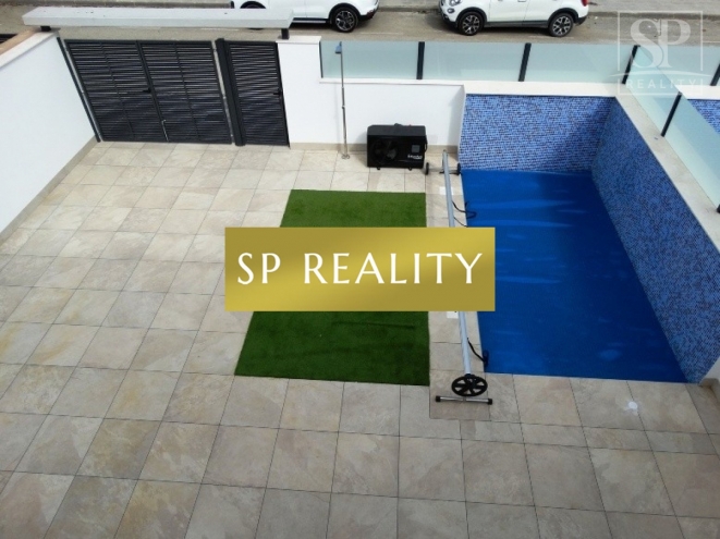Novostavba čtyř dvojdomků se soukromým bazénem v ceně a dispozicí 3+kk / 3 koupelny. Moderní otevřený obývací prostor s kuchyní, velká okna do zahrady a praktické rozvržení s en-suite koupelnou. Součástí je soukromá zahrada, solárium a soukromé parkování. Lokalita nabízí perfektní občanskou vybavenost a rychlé napojení: 5 minut jízdy na písečné pláže Torre de la Horadada a do mariny, 5 minut pěšky do centra Pilar de la Horadada, 2 minuty k obchodům a sportovnímu centru, 15 minut k La Zenia Boulevard, 10 minut na prestižní golfová hřiště Campoamor, Villamartín, Las Ramblas (cca 45 minut k La Manga Golf Club), 40 minut na letiště Alicante, 30 minut na letiště Murcia a 40 minut do měst Murcia a Alicante. Domy se staví v dnešních standardech s důrazem na kvalitu: předinstalace kanálové klimatizace, dvojitá skla, vestavěné skříně, a prvky pro nižší spotřebu energie (fotovoltaika). Skvělá volba, pokud chcete moderní dům s vlastním bazénem kousek od moře i zázemí města.